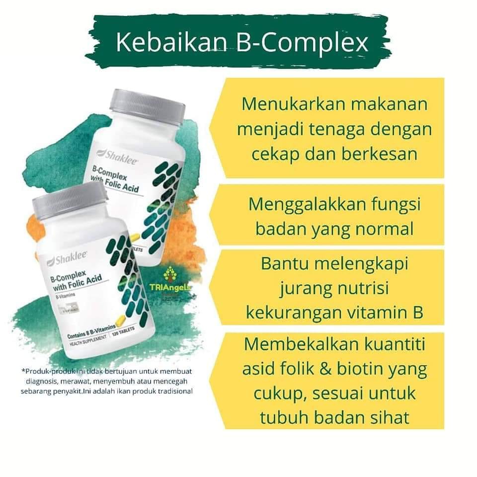 B-Complex Shaklee juga mengandungi kesemua 8 komponen penting termasuklah 100 biotin dan asid folik. Shopee Harga Shaklee B-Complex with Folic Acid. B COMPLEX adalah satu kumpulan vitamin B.